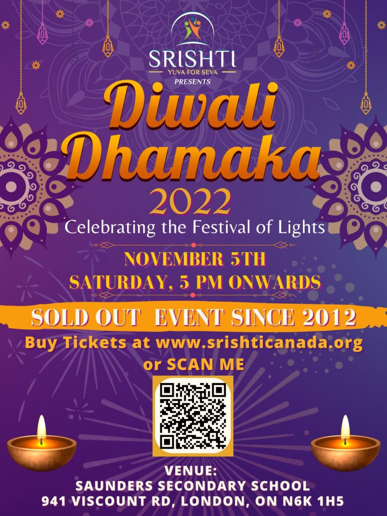 Welcome to the biggest Diwali celebrations in South Western Ontario, with approximately a thousand of us in Fun, Food, Festivities and professional Fireworks on Saturday, November 5th, at Saunders Secondary School for an experience that includes…